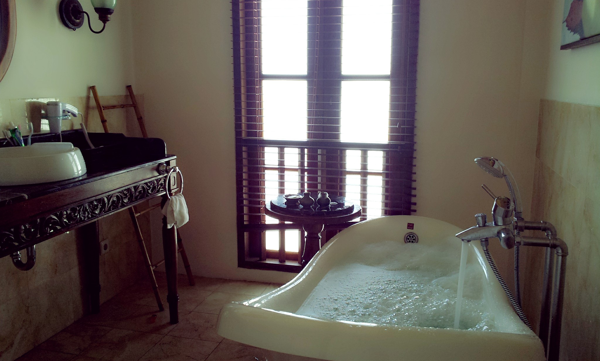 Dimas yang hobi nonton langsung cari-cari pelem di tv kabel, Dinda yang doyan makan langsung minta pesanan makan di kamar, Drea yang seneng mandi langsung aja mandi. Saya dan suami sih karena doyan tidur yang langsung tiduran.