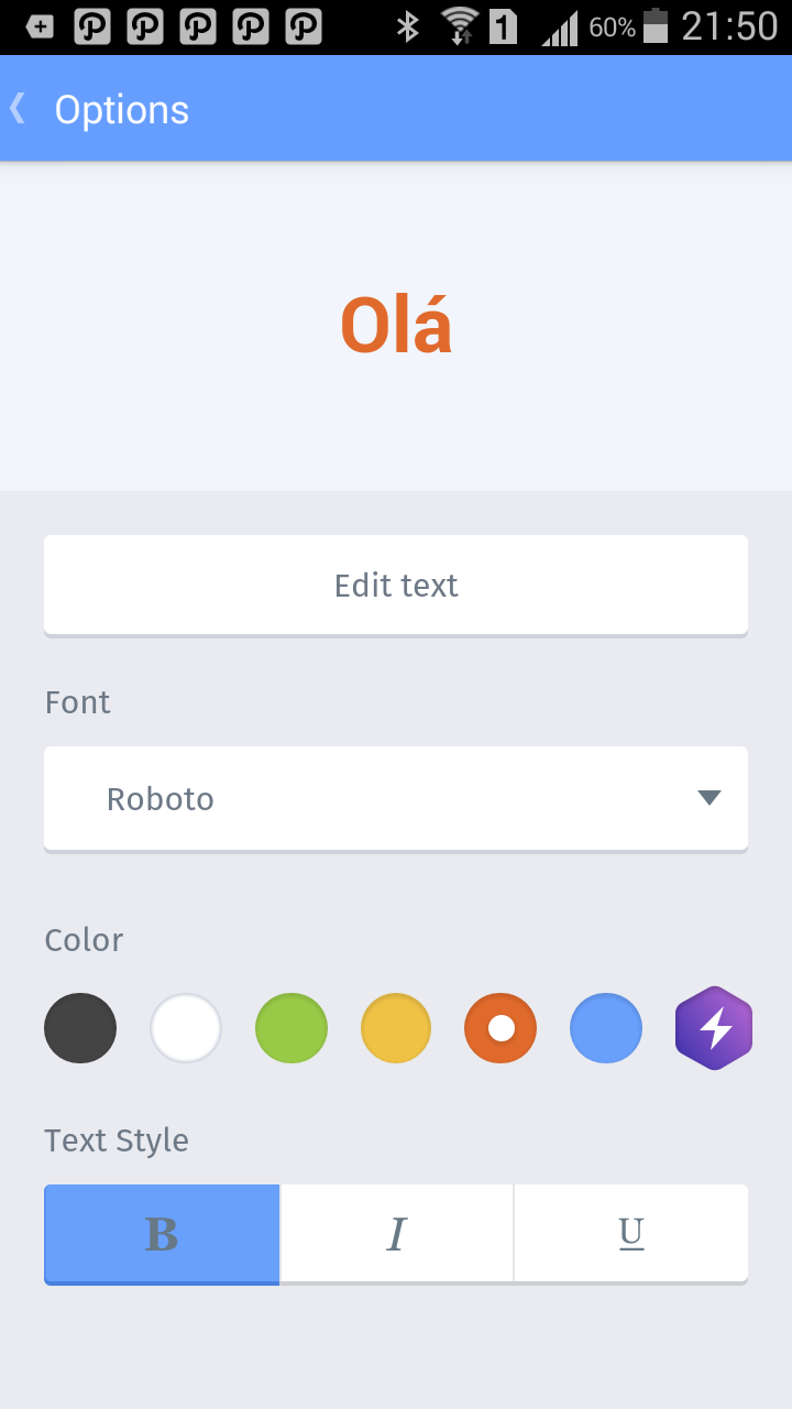 Langsung setelah login kita bisa menggunakan aplikasi ini untuk membuat project yang kita suka, ada beberapa tiles yang langsung bisa kita ceplokin gambar atau bikin komik untuk membuat sesuatu yang menarik. Gambar bisa langsung ambil dari gallery di handphone kita, ada beberapa opsi untuk menambahkan text dan merubah warna font dan jenis fontnya, semua opsi bisa divariasikan dan dikustomisasi untuk diubah warnanya sesuai selera atau ditambah border dan lainnya.