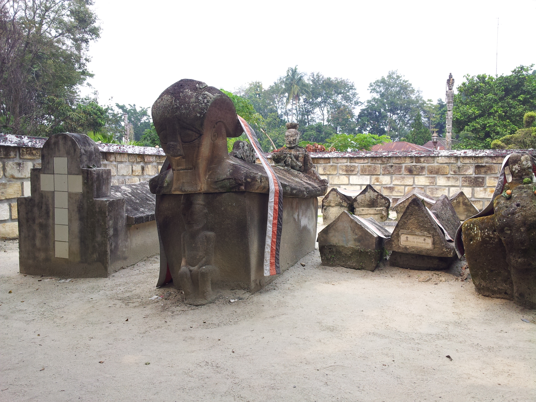 Makam raja-raja ini berupa sarcophagus, yaitu makam batu di atas tanah yang diukir dan diberi penutup. Yang paling besar dalam foto di atas adalah makam makam Raja Ompu Naibatu Ni Ujung Barita Sidabutar. Yang kira-kira artinya Raja yang perkasa sekeras batu yang terkenal beritanya sampai ujung dinia. Raja Naibatu ini memang terkenal sangat sakti mandra guna, Adapun ukiran di bagian belakang tutup batunya adalah ukiran wanita yang paling dicintai raja yaitu Anting Malela. Raja terkenal sangat sakti dengan rambutnya yang gimbal. Tampak di ukiran batu tersebut rambutnya yang tebal diukir. Warna hitam merah dan putih mendominasi warna pada lambang-lambang yang ada di makam kuno ini. Mengingatkan kepada ukiran dan warna di Toraja. Padahal jaraknya jauh ya. Melambangkan hal yang sama yaitu dunia bawah, dunia tengah yaitu alam ini, dan dunia akhirat.