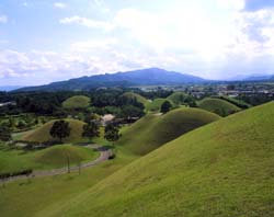 and eaten with sauce wrapped by different kinds of vegetables and lettuce. Also enjoy the banchan, various kinds of side dish, as a supplementary food Ssambab. It is important, I need energy to cycling around, so I put eating as the first thing to do in order. Tumuli park (known as Daereungwon in Korean) has more than 20 large and small tombs from the Silla period and has been designated Historic site #175. The tombs are presumed to be those of kings and court officials. The dimensions of the tombs vary with heights range from less than 1 meter to 23 meters. Most of them are earthen and mound-shaped. Very exhilarate to see there by cycling around.